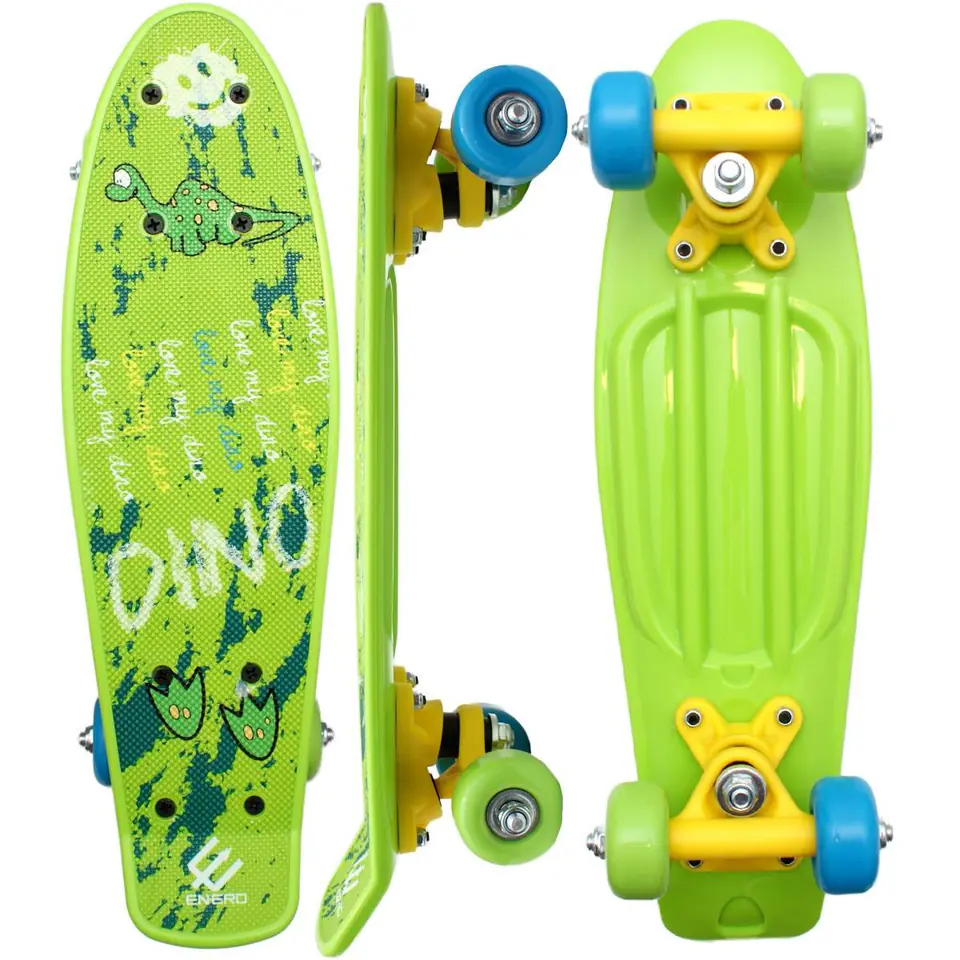 Jazda na deskorolce daje nie tylko frajdę, ale też poprawia sprawność fizyczną, pobudzając wszystkie mięśnie. Pozwala również, ćwiczyć wytrwałość i cierpliwość. DESKOROLKA PLASTIKOWA ENERO MINI DINO idealnie posłuży do rozpoczęcia przygody z tym rodzajem sportu oraz do nauki jazdy. Została stworzona z myślą o rekreacyjnej jeździe po miejskich terenach, doskonale sprawdzi się w przypadku pokonywania krótkich dystansów np. można jeździć nią np.: do przedszkola czy do szkoły.