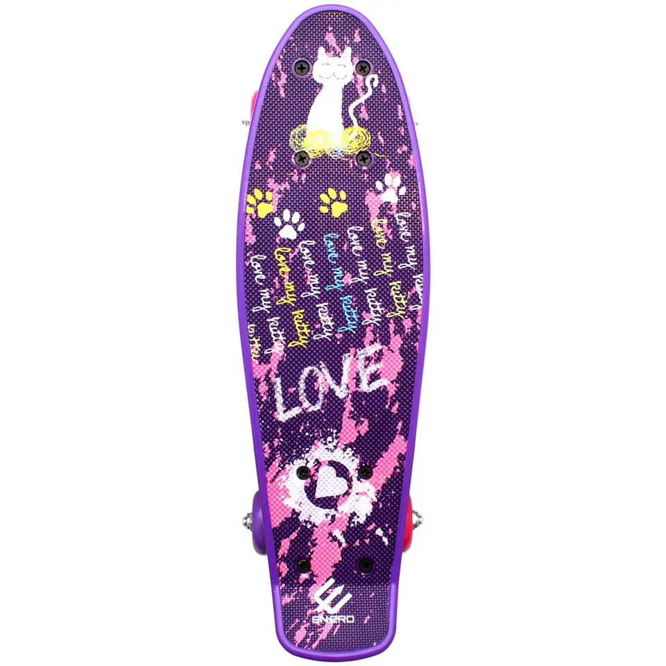 Jazda na deskorolce daje nie tylko frajdę, ale też poprawia sprawność fizyczną, pobudzając wszystkie mięśnie. Pozwala również, ćwiczyć wytrwałość i cierpliwość. DESKOROLKA PLASTIKOWA ENERO MINI LOVE KITTYidealnie posłuży do rozpoczęcia przygody z tym rodzajem sportu oraz do nauki jazdy. Została stworzona z myślą o rekreacyjnej jeździe po miejskich terenach, doskonale sprawdzi się w przypadku pokonywania krótkich dystansów np. można jeździć nią np.: do przedszkola czy do szkoły.