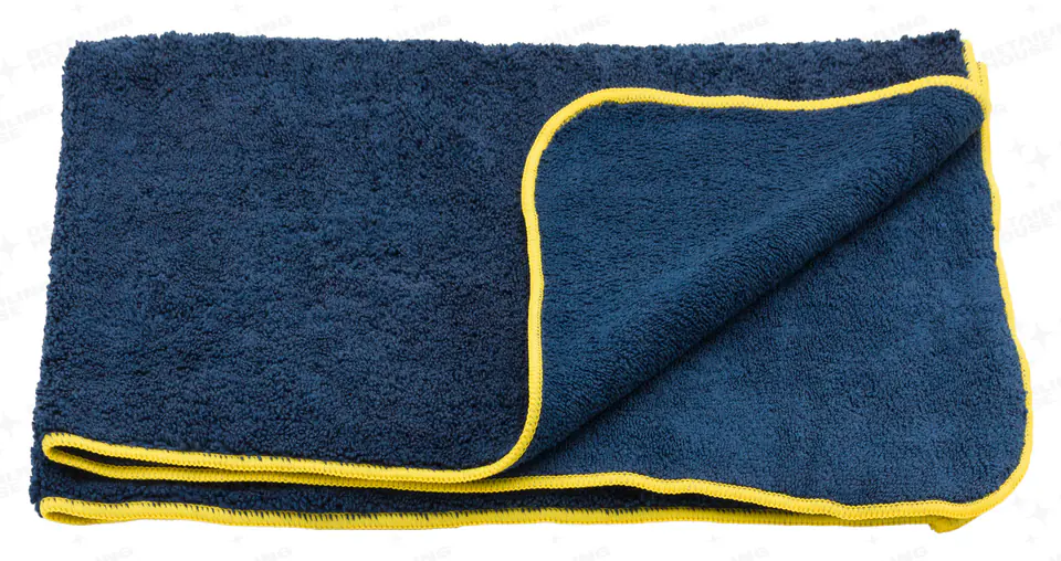 Ręcznik z mikrofibry fluffy 60x90 cm granatowy z żółtym obszyciem, gramatura 550 g/m2, skład: 80% poliester, 20% poliamid