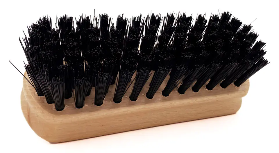 Szczoteczka do tapicerki materiałowej – włosie czarne, sztuczne, sztywne. Idealna do tapicerek z materiału, nie farbuje, może być używana ze środkami do czyszczenia tapicerki.