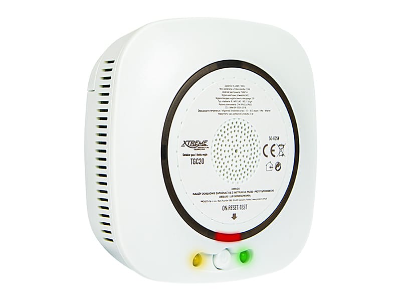 Detektor czujnika tlenku węgla i gazu XTREME z możliwością konfiguracji urządzenia za pomocą wbudowanego Wi-Fi oraz dedykowanej aplikacji TUYA SMART LIFE. W przypadku wykrycia gazu lub tlenku węgla czujnik wydaje ostrzeżenia dźwiękowe oraz optyczne za pomocą czerwonej diody.