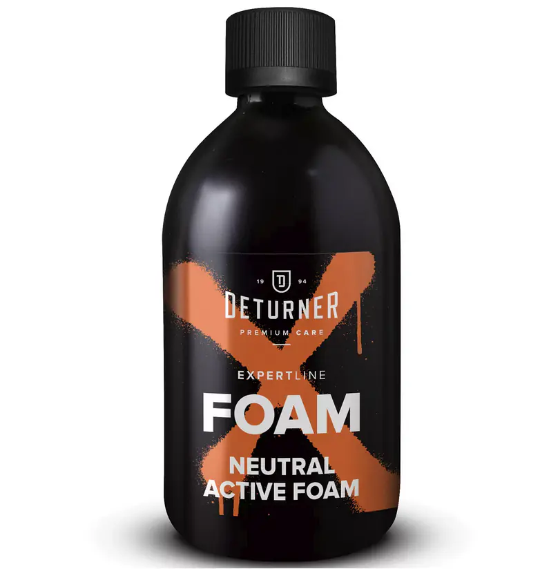Deturner Expert Line Foam – wysoce skoncentrowana, neutralna piana aktywna, która daję bardzo gęstą pianę o wysokich właściwościach zmiękczających. Rozpuszcza brud i zabrudzenia drogowe pozwalając na bezpiecznie mycie właściwe. Nie uszkadza zastosowanych powłok oraz wosków, szczególnie opartych na naturalnych składnikach co umożliwia regularne stosowanie.