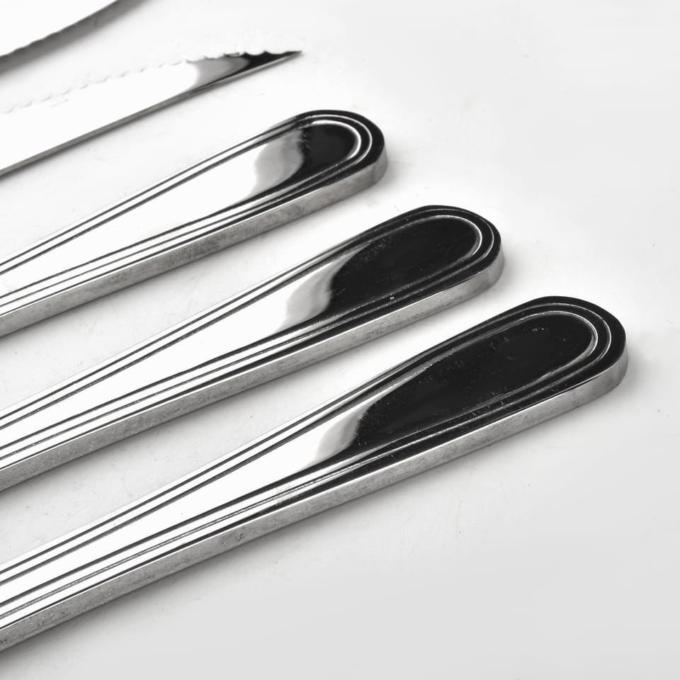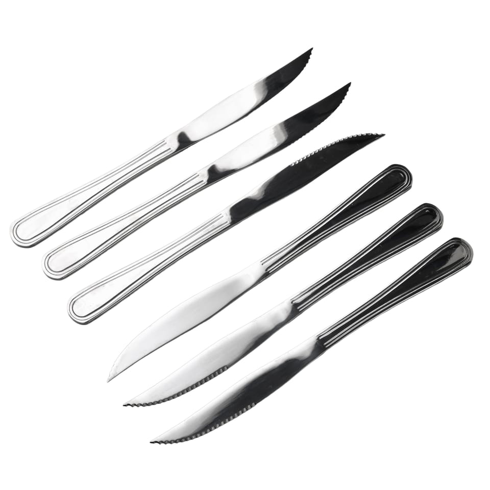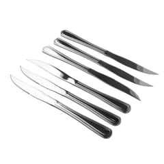Komplet 6 noży DHALIA o długości 22,8cm praktyczne i estetyczne uzupełnienie każdej kuchni. Noże wykonane zostały z wysokiej jakości stali nierdzewnej, co zapewnia trwałość, odporność na korozję oraz długotrwałą ostrość. Ich uniwersalny rozmiar sprawia, że świetnie sprawdzają się do codziennego użytku . zarówno do krojenia warzyw, owoców, jak i mięsa czy pieczywa. Gładka powierzchnia ułatwia czyszczenie, a możliwość mycia w zmywarce czyni je wyjątkowo wygodnymi w codziennej pielęgnacji. Nowoczesny i elegancki wygląd noży DHALIA sprawia, że będąone nie tylko funkcjonalnym, ale i stylowym dodatkiem do kuchni. długość: 22,8cm