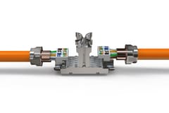 - Złącze Cat.6A LSA do kabli instalacyjnych składa się z metalowej obudowy z metalową nakrętką, styku ekranowanego 360° oraz zintegrowanego systemu mocowania i odciążania kabli.