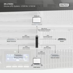 DIGITUS OnLine UPS, rack/tower, 1500VA, 1500W, LCD, 8 x C13, 1 x C19, RS-232, USB, RJ45, SNMP card (optional), relay card (optional) Digitus