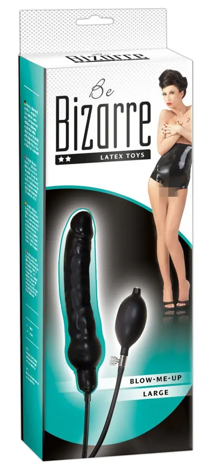Nadmuchiwane czarne dildo wykonane z lateksu, w kształcie penisa. Całkowita długość dildo 25 cm, głębokość penetracji ca. 17 cm. O 2.5-4.2 cm.