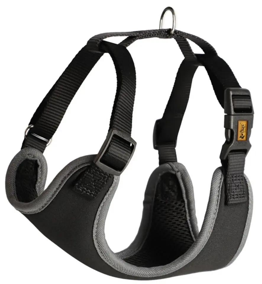 • idealnie dopasowują się do budowy ciała psa dzięki dwupaskowej i bezstopniowej regulacji,