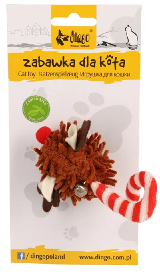 Dingo Zabawka dla kota - Jeżomyszka MOPNajbardziej klasyczny rodzaj zabawek dla kota w nowej odsłonie mop! Zabawka dla kota jeżomyszka to niezastąpiony wybór dla kota!Jeżomyszka MOP to zabawka dla każdego kota. Dlaczego? Bo każdy kot kocha kocimiętkę! Jest to zapach, któremu żaden się nie oprze - dlatego jeżomyszka to idealny prezent dla Twojego pupila!Czerwony nos i zakręcony, lizakowaty ogonek tylko dodają jej uroku. Materiał mop, z którego ta zabawka jest wykonana, to idealna alternatywa dla tradycyjnych myszek. Mop zapewni nowe doznania sensoryczne i przegoni nudę!Oprócz kocimiętki, do zabawy z jeżomyszką zachęci też dzwoneczek przytwierdzony u nasady ogonka. Możesz być pewien, że to świetna zabawka dla Twojego kociaka!Charakterystyka jeżomyszki MOP: