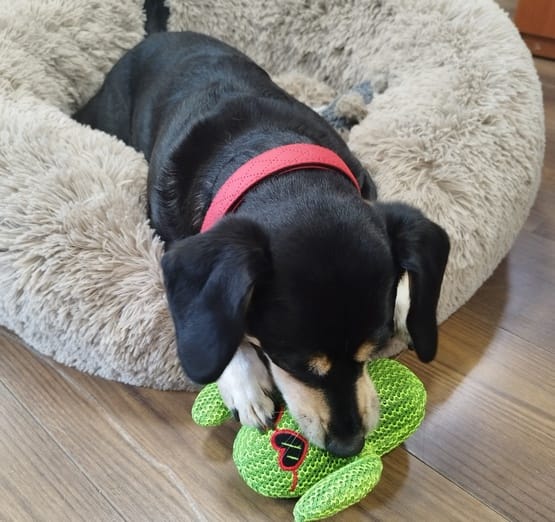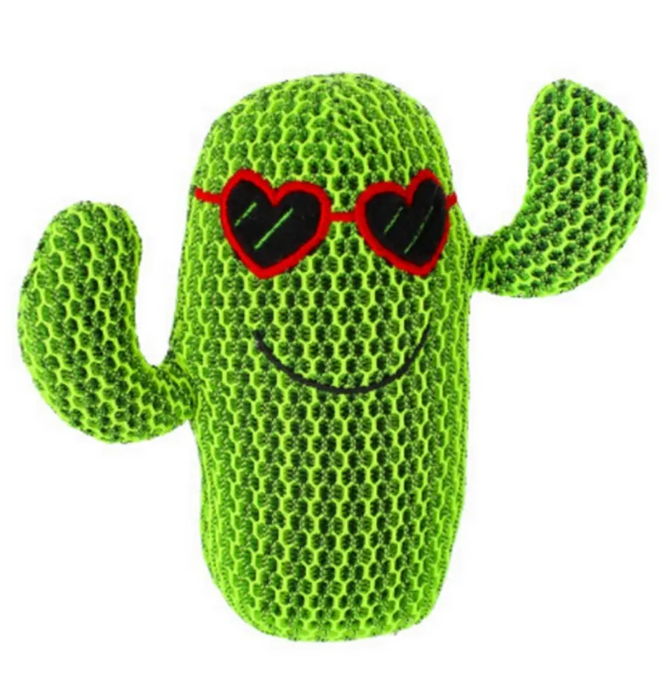 Fernando patrzy na świat przez swoje okulary przeciwsłoneczne w kształcie serc, które są wyszyte w materiale, dzięki czemu możesz być pewien, że nawet mimo długich i męczących zabaw Fernanda z Twoim psem, nie spadną mu one z oczu, podobnie jak nie zetrze się jego również haftowany uśmiech.Uwodzicielski Fernando w kształcie kaktusa z piszczałką został uszyty z różnych materiałów, więc dostarczy Twojemu psu nowych, sensorycznych doznań, a także pobudzi jego umysł.Charakterystyka pluszowego kaktusa Fernando: