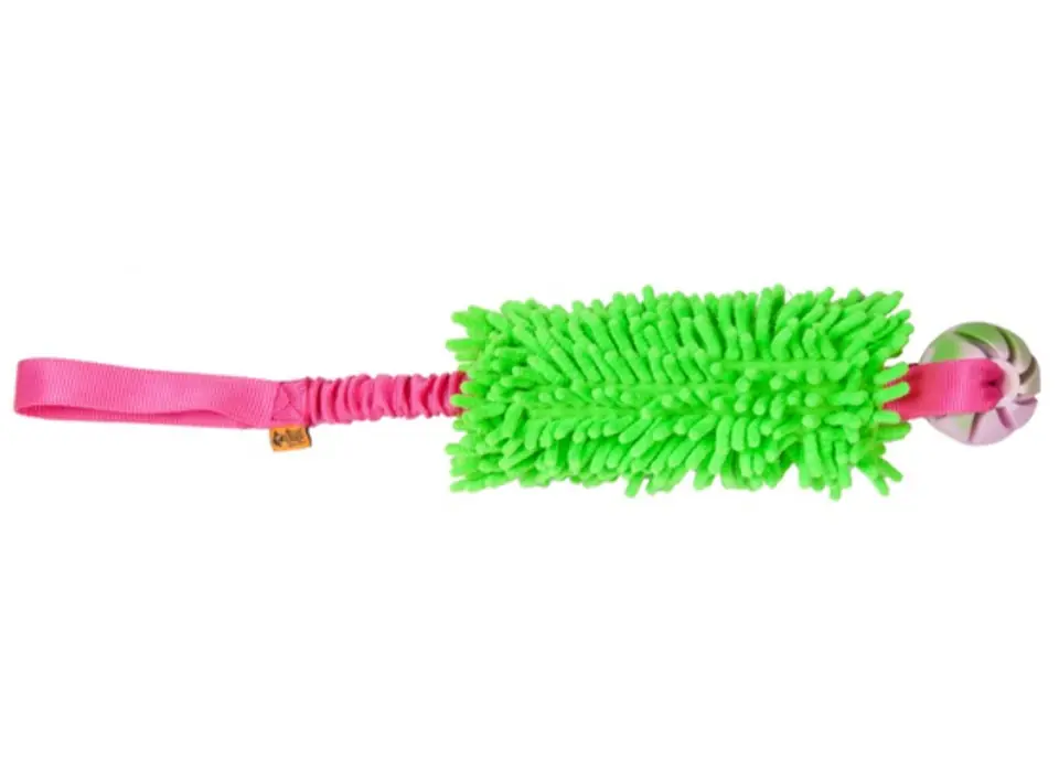 Dwie zabawki w jednym? Tylko z szarpakiem mop z amortyzowaną rączką i piłką unoszącą się na wodzie!Szarpak mop z rączką bungee to kolorowa zabawka-gyzak dla psa.