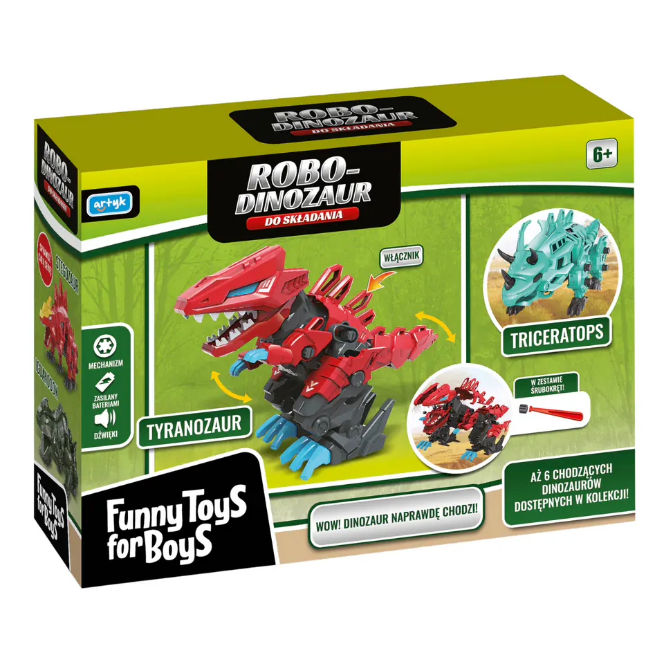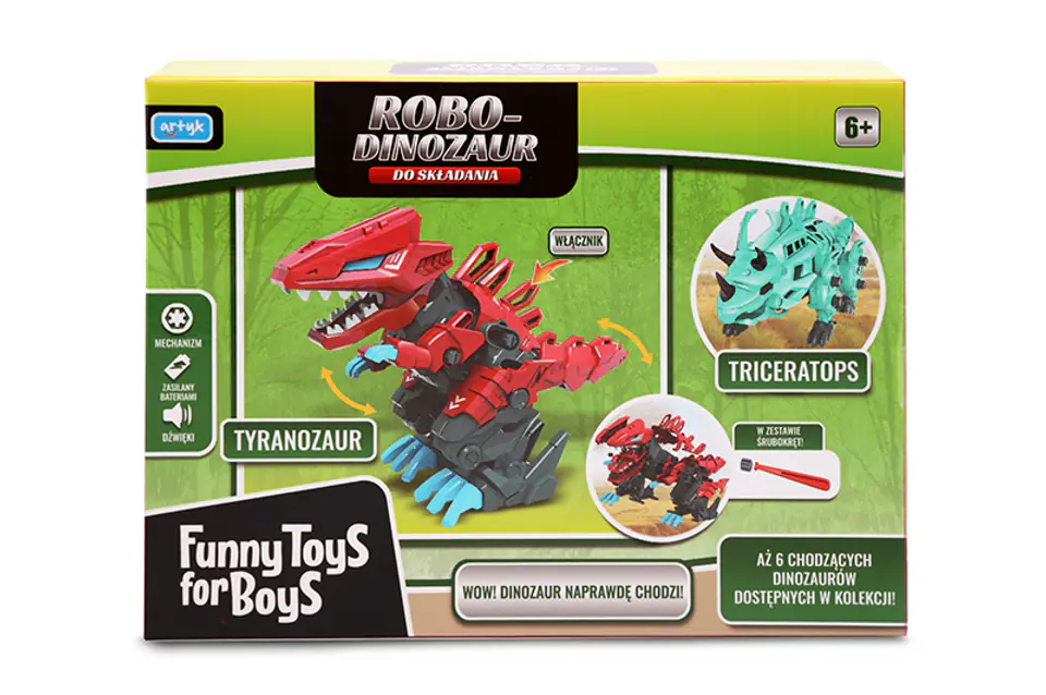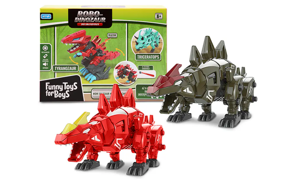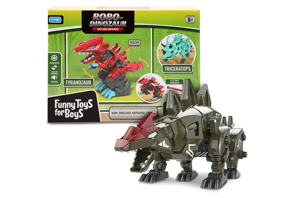 Przedstawiamy interaktywnego robota dinozaura! Jeśli twoje dziecko interesuje się majsterkowaniem, a przy okazji dinozaurami, to przedstawiamy dinozaura do skręcania. Do zestawu jest dołączony śrubokręt, który pozwoli każdemu dziecku stworzyć i skręcić dinozaura! Rozwinie to funkcję ręki oraz przygotuje do dalszej nauki pisania. Gdy dinozaur będzie już w całości, można zacząć prawdziwą zabawę! Dinozaur dzięki swoim efektom, przypomina prawdziwe zwierzę. Podczas zabawy wydaje dźwięki dinozaura, porusza ogonem, a nawet chodzi.