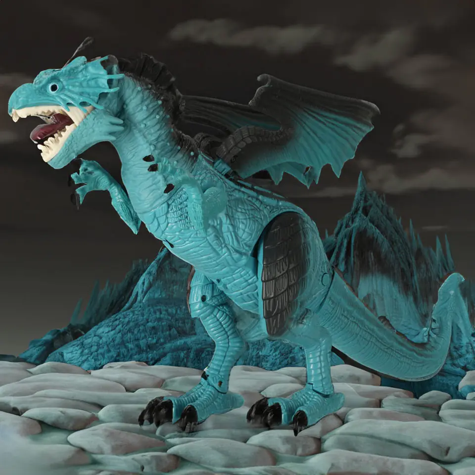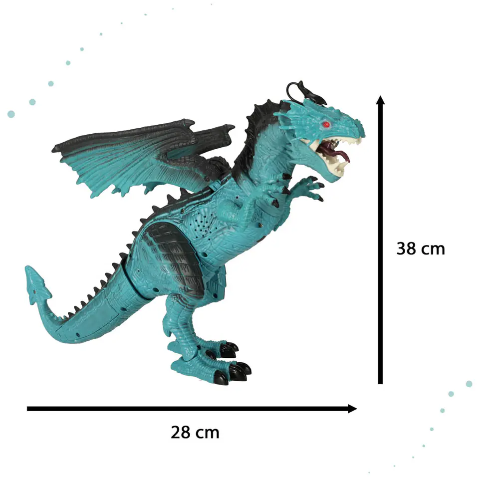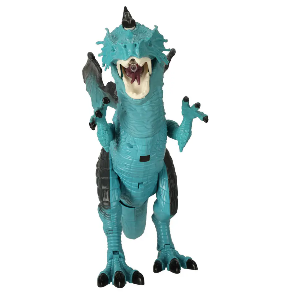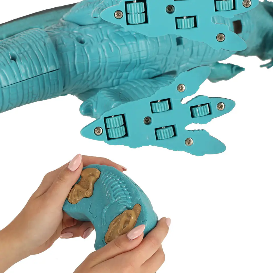 Wydaje realistyczny, głośny dźwięk ryku. Posiada ruchomą głowę i skrzydła.