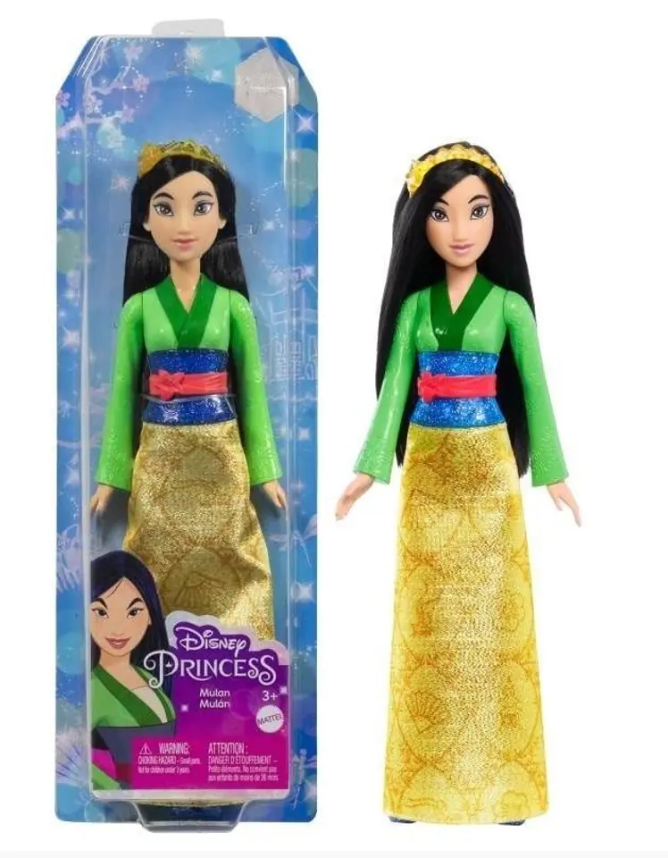 Przedstawiamy lalkę Mulan inspirowaną odważną i zdecydowaną księżniczką z klasycznego filmu Disneya. Ta lalka do ustawiania w różnych pozach ma mieniący się strój i akcesoria, na które składają się buciki i tiara. Ubrana w swoją kultową stylizację z filmu Mulan jest gotowa na każdą przygodę!