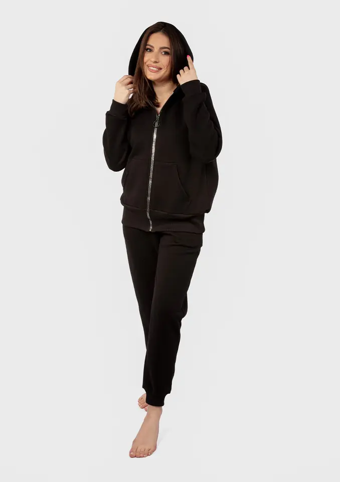 Komplet to doskonałe połączenie stylu i wygody, idealne na każdą okazję. Składający się z grubej bluzy rozpinanej z kapturem oraz spodni, zestaw ten jest niezastąpiony dla każdego, kto ceni sobie komfort i modny wygląd.