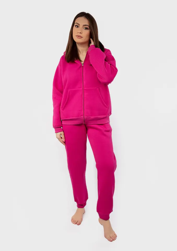 Komplet to doskonałe połączenie stylu i wygody, idealne na każdą okazję. Składający się z grubej bluzy rozpinanej z kapturem oraz spodni, zestaw ten jest niezastąpiony dla każdego, kto ceni sobie komfort i modny wygląd.