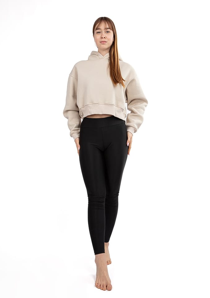 Legginsy wchodzące w skład kompletu to propozycja idealna dla kobiet, które poszukują wygodnych i trwałych rozwiązań na co dzień. Wykonane z wysokogatunkowego materiału, w którego skład wchodzi 89% poliamidu i 11% elastanu, legginsy doskonale dopasowują się do sylwetki, podkreślając jej naturalne kształty. Elastyczna tkanina zapewnia pełną swobodę ruchów, dzięki czemu legginsy sprawdzą się zarówno podczas treningów, jak i spacerów czy wieczornego relaksu. Uniwersalna, czarna kolorystyka sprawia, że legginsy można łatwo zestawić z innymi elementami garderoby, tworząc niezliczone stylizacje. To nie tylko komfort, ale także ponadczasowa elegancja w nowoczesnym wydaniu.