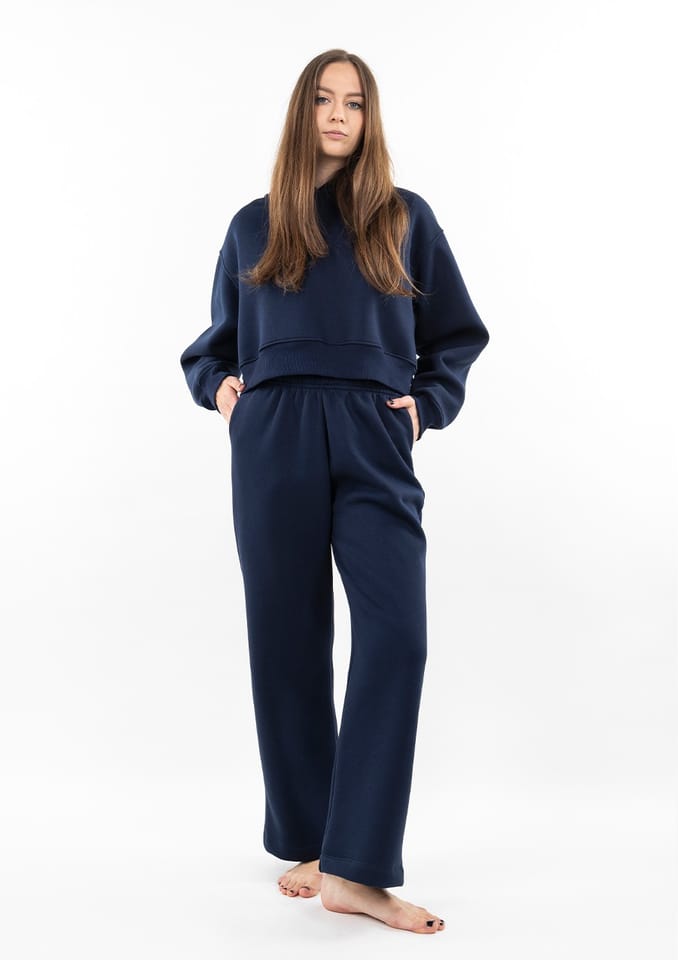 Szerokie spodnie dresowe wchodzące w skład kompletu DK-K-B15 to idealne uzupełnienie bluzy. Podobnie jak bluza, zostały wykonane z wysokiej jakości bawełny, która zapewnia komfort i ciepło. Ich luźny krój i elastyczny pas sprawiają, że spodnie są wygodne w noszeniu i zapewniają pełną swobodę ruchów. Szerokie nogawki dodają całości lekkości, a jednocześnie doskonale komponują się z krótką bluzą, tworząc spójną, modną stylizację. Idealne na co dzień, do noszenia w domowym zaciszu, na spacerach czy podczas bardziej relaksujących aktywności. Spodnie świetnie wpisują się w obecne trendy, oferując nie tylko komfort, ale także nowoczesny wygląd. Dostępne w różnych kolorach, będą odpowiednie do każdej stylizacji.