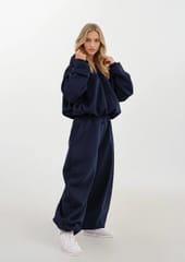 Dopełnieniem kompletu są spodnie o szerokich, wygodnych nogawkach zakończonych ściągaczem przy kostce. Taki krój gwarantuje maksymalną swobodę ruchów, jednocześnie zachowując modny i zgrabny wygląd. Wysoki stan oraz elastyczna talia pozwalają dopasować spodnie do sylwetki, podkreślając jej atuty i zapewniając wygodę przez cały dzień.