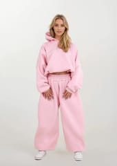 Dopełnieniem kompletu są spodnie o szerokich, wygodnych nogawkach zakończonych ściągaczem przy kostce. Taki krój gwarantuje maksymalną swobodę ruchów, jednocześnie zachowując modny i zgrabny wygląd. Wysoki stan oraz elastyczna talia pozwalają dopasować spodnie do sylwetki, podkreślając jej atuty i zapewniając wygodę przez cały dzień.