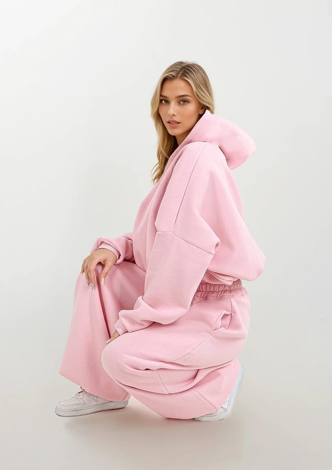 Komplet dresowy DK-K-B27 dostępny jest w kilku stylowych wariantach kolorystycznych, dzięki czemu każda kobieta może dopasować go do swojego charakteru i nastroju. Delikatny bladoróżowy wprowadza nutę subtelności i dziewczęcego uroku, idealny na codzienne wyjścia czy chwile relaksu. Klasyczny brązowy to ciepły i uniwersalny odcień, który doskonale sprawdza się w jesiennych i zimowych stylizacjach, nadając im elegancji. Szary to ponadczasowy wybór – neutralny, łatwy do łączenia z innymi elementami garderoby, świetny zarówno w minimalistycznych, jak i sportowych zestawach. Z kolei głęboki granatowy podkreśla nowoczesny styl i nadaje całości bardziej wyrazistego charakteru. Dzięki takiej różnorodności kolorów komplet sprawdzi się w każdej sytuacji i pozwoli stworzyć stylizacje dopasowane do różnych okazji.