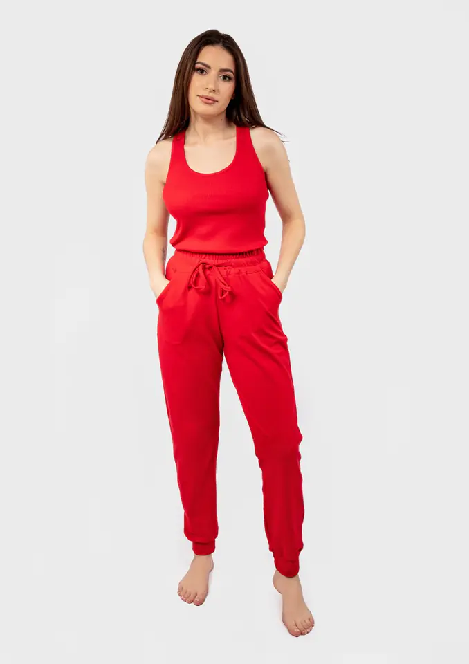 Zestaw DK-K-B5 to idealne połączenie stylu i komfortu, które zapewni Ci komfort noszenia. Składający się z bluzki bokserki i długich, cienkich spodni z bawełny, ten zestaw jest idealny na każdą okazję. Wygodny top na ramiączka będzie idealne na ciepłe wiosenno- letnie dni.
