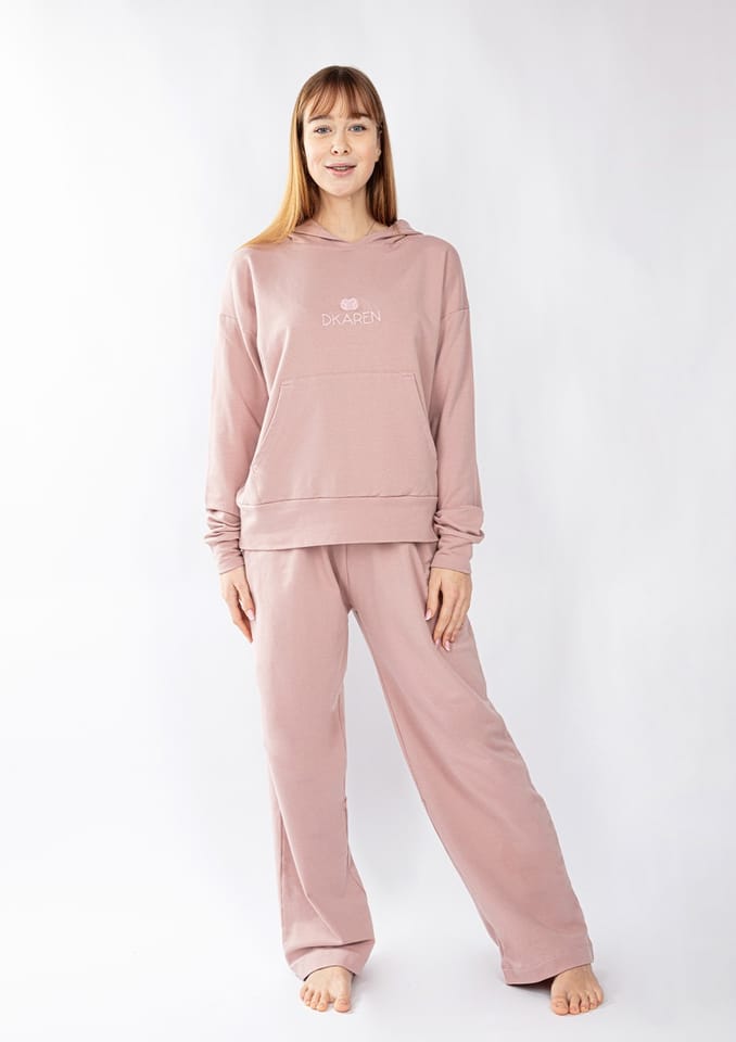 Komplet dresowy Dkaren – styl i komfort w jednymPoznaj wyjątkowy komplet dresowy marki Dkaren DK-K-B8-H1, który łączy nowoczesny styl z niezrównaną wygodą. Stworzony z myślą o kobietach ceniących modę i komfort, ten zestaw to doskonały wybór na co dzień. Komplet składa się z bluzy z kapturem oraz długich, rozszerzanych spodni, które razem tworzą elegancką i funkcjonalną całość. Komplet jest wykonany z bawełny.Bluza z kapturem z haftemBluza z kapturem to idealne połączenie klasyki i nowoczesnego designu. Subtelny haft z logo marki Dkaren, umieszczony na środku bluzy, doskonale harmonizuje z jej kolorem, tworząc minimalistyczny, a zarazem stylowy akcent. Praktyczny kaptur zapewnia ochronę przed chłodem i nadaje bluzie casualowy charakter, idealny do noszenia zarówno w domu, jak i na zewnątrz. Bluza posiada kieszonkę typu kangurka.Rozszerzane spodnie dresoweSpodnie wchodzące w skład kompletu mają modny, rozszerzany krój, który jest nie tylko wygodny, ale również dodaje sylwetce lekkości i elegancji. Wykonane z wysokiej jakości materiału, spodnie są miękkie, przyjemne w dotyku i doskonale układają się na ciele. Minimalistyczny haft na spodniach subtelnie podkreśla ich ekskluzywny charakter, jednocześnie pozostając w harmonii z całością zestawu.17 kolorów kompletu dresowegoKomplet dresowy Dkaren dostępny jest w imponującej palecie 17 modnych kolorów. Od klasycznych, stonowanych barw, takich jak czerń, szarość czy beż, po bardziej wyraziste odcienie – każda kobieta znajdzie swój ulubiony kolor, który najlepiej pasuje do jej stylu i okazji.Idealnie dopasowany komplet dresowyNasz komplet dresowy to wybór, który sprawdzi się w różnych sytuacjach. Możesz nosić go podczas leniwych dni w domu, spacerów, a także w trakcie bardziej aktywnych chwil. Dzięki uniwersalnemu designowi i szerokiej gamie kolorów łatwo dopasujesz go do ulubionych dodatków, tworząc zarówno sportowe, jak i bardziej eleganckie stylizacje.Dresy Dkaren – połączenie stylu i wygodyKomplet dresowy DK-K-B8-H1 marki Dkaren to must-have w garderobie każdej kobiety. Połączenie modnego kroju, wysokiej jakości materiałów oraz szerokiej palety kolorów sprawia, że ten zestaw jest idealnym wyborem dla kobiet, które nie chcą rezygnować z komfortu, dbając jednocześnie o modny wygląd. Wybierz komplet dresowy Dkaren i ciesz się stylem oraz wygodą na co dzień! Jak prać i prasować bawełnę? Materiał wiskozę prać z procesem ochronnym w temepraturze nie wyższej niż 30°C / 40°C. Prasować w temperaturze nie wyższej niż 150°C. Nie czyścić chemicznie i nie suszyć w suszarce bębnowej. Pamiętaj, że najlepszym sposobem jest suszenie na wieszaku.Materiał: BawełnaSkład surowcowy: 95 % bawełna, 5 % elastan.