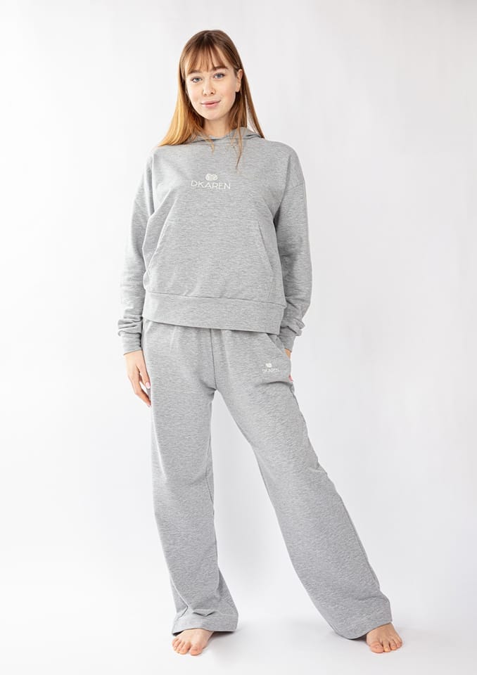 Komplet dresowy Dkaren – styl i komfort w jednymPoznaj wyjątkowy komplet dresowy marki Dkaren DK-K-B8-H1, który łączy nowoczesny styl z niezrównaną wygodą. Stworzony z myślą o kobietach ceniących modę i komfort, ten zestaw to doskonały wybór na co dzień. Komplet składa się z bluzy z kapturem oraz długich, rozszerzanych spodni, które razem tworzą elegancką i funkcjonalną całość. Komplet jest wykonany z bawełny.Bluza z kapturem z haftemBluza z kapturem to idealne połączenie klasyki i nowoczesnego designu. Subtelny haft z logo marki Dkaren, umieszczony na środku bluzy, doskonale harmonizuje z jej kolorem, tworząc minimalistyczny, a zarazem stylowy akcent. Praktyczny kaptur zapewnia ochronę przed chłodem i nadaje bluzie casualowy charakter, idealny do noszenia zarówno w domu, jak i na zewnątrz. Bluza posiada kieszonkę typu kangurka.Rozszerzane spodnie dresoweSpodnie wchodzące w skład kompletu mają modny, rozszerzany krój, który jest nie tylko wygodny, ale również dodaje sylwetce lekkości i elegancji. Wykonane z wysokiej jakości materiału, spodnie są miękkie, przyjemne w dotyku i doskonale układają się na ciele. Minimalistyczny haft na spodniach subtelnie podkreśla ich ekskluzywny charakter, jednocześnie pozostając w harmonii z całością zestawu.17 kolorów kompletu dresowegoKomplet dresowy Dkaren dostępny jest w imponującej palecie 17 modnych kolorów. Od klasycznych, stonowanych barw, takich jak czerń, szarość czy beż, po bardziej wyraziste odcienie – każda kobieta znajdzie swój ulubiony kolor, który najlepiej pasuje do jej stylu i okazji.Idealnie dopasowany komplet dresowyNasz komplet dresowy to wybór, który sprawdzi się w różnych sytuacjach. Możesz nosić go podczas leniwych dni w domu, spacerów, a także w trakcie bardziej aktywnych chwil. Dzięki uniwersalnemu designowi i szerokiej gamie kolorów łatwo dopasujesz go do ulubionych dodatków, tworząc zarówno sportowe, jak i bardziej eleganckie stylizacje.Dresy Dkaren – połączenie stylu i wygodyKomplet dresowy DK-K-B8-H1 marki Dkaren to must-have w garderobie każdej kobiety. Połączenie modnego kroju, wysokiej jakości materiałów oraz szerokiej palety kolorów sprawia, że ten zestaw jest idealnym wyborem dla kobiet, które nie chcą rezygnować z komfortu, dbając jednocześnie o modny wygląd. Wybierz komplet dresowy Dkaren i ciesz się stylem oraz wygodą na co dzień! Jak prać i prasować bawełnę? Materiał wiskozę prać z procesem ochronnym w temepraturze nie wyższej niż 30°C / 40°C. Prasować w temperaturze nie wyższej niż 150°C. Nie czyścić chemicznie i nie suszyć w suszarce bębnowej. Pamiętaj, że najlepszym sposobem jest suszenie na wieszaku.Materiał: BawełnaSkład surowcowy: 95 % bawełna, 5 % elastan.