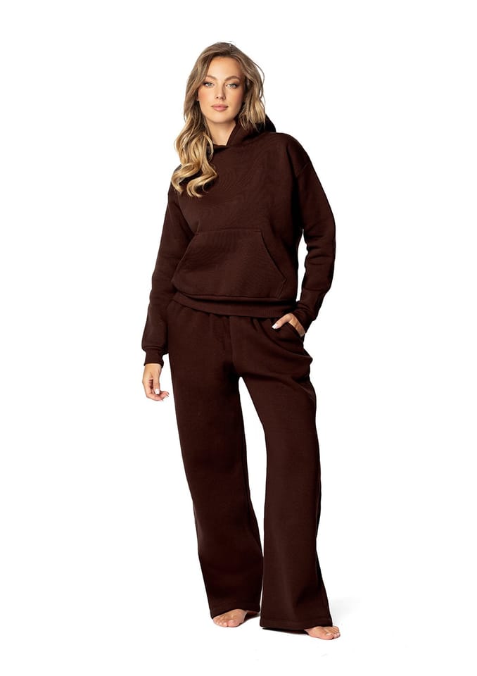 Dres składa się ze spodni o szerokich nogawkach, które zapewniają swobodę ruchu, oraz bluzy kangurki z praktycznymi kieszonkami. Spodnie są wyposażone w elastyczną gumkę w pasie, co sprawia, że idealnie dopasowują się do sylwetki i zapewniają wygodę przez cały dzień. Bluza kangurka, z charakterystyczną przednią kieszenią, jest idealna do ogrzewania rąk lub przechowywania drobnych przedmiotów.
