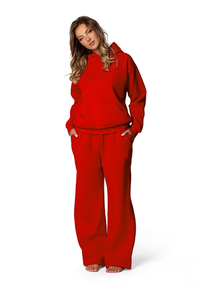 Dres składa się ze spodni o szerokich nogawkach, które zapewniają swobodę ruchu, oraz bluzy kangurki z praktycznymi kieszonkami. Spodnie są wyposażone w elastyczną gumkę w pasie, co sprawia, że idealnie dopasowują się do sylwetki i zapewniają wygodę przez cały dzień. Bluza kangurka, z charakterystyczną przednią kieszenią, jest idealna do ogrzewania rąk lub przechowywania drobnych przedmiotów.