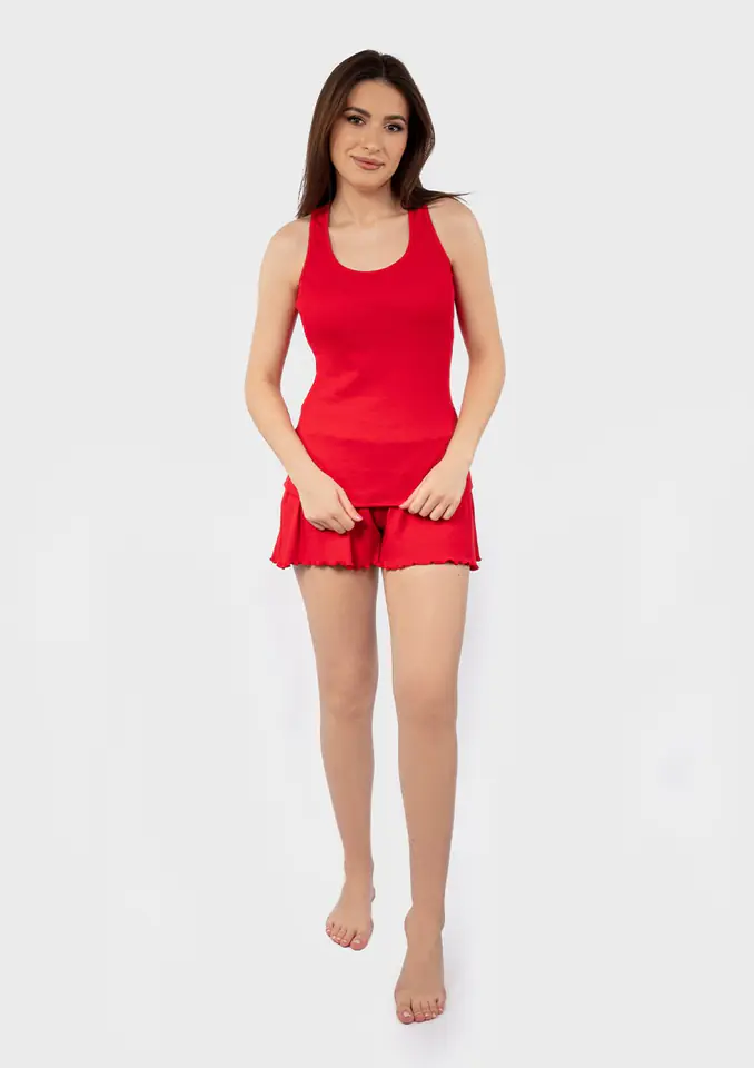 Komplet w prążki to esencja wiosny i lata, stworzona dla kobiet ceniących sobie zarówno styl, jak i wygodę. Jego lekka tkanina delikatnie otula ciało, zapewniając niepowtarzalne uczucie swobody i lekkości, które są idealne na ciepłe dni i letnie wieczory. Komplet składa się z bluzki w prążki na ramiączka oraz dopasowanych szortów zakończonych delikatnym falbankowym obszyciem. Szorty zakończone gumką w pasie idealnie przylegają do ciała. Romantyczne falbanki, dodają temu kompletowi niezwykłego dziewczęcego uroku, podkreślając Twoją delikatność i kobiecość. Dostępny w szerokiej gamie kolorów, komplet w prążki DKaren pozwala Ci wyrazić swoją indywidualność, dopasowując się do Twoich preferencji i nastroju. Bez względu czy decydujesz się na delikatne odcienie nude, czy może wybierzesz intensywne odcienie, zawsze będziesz emanować pewnością siebie i stylowym wdziękiem.