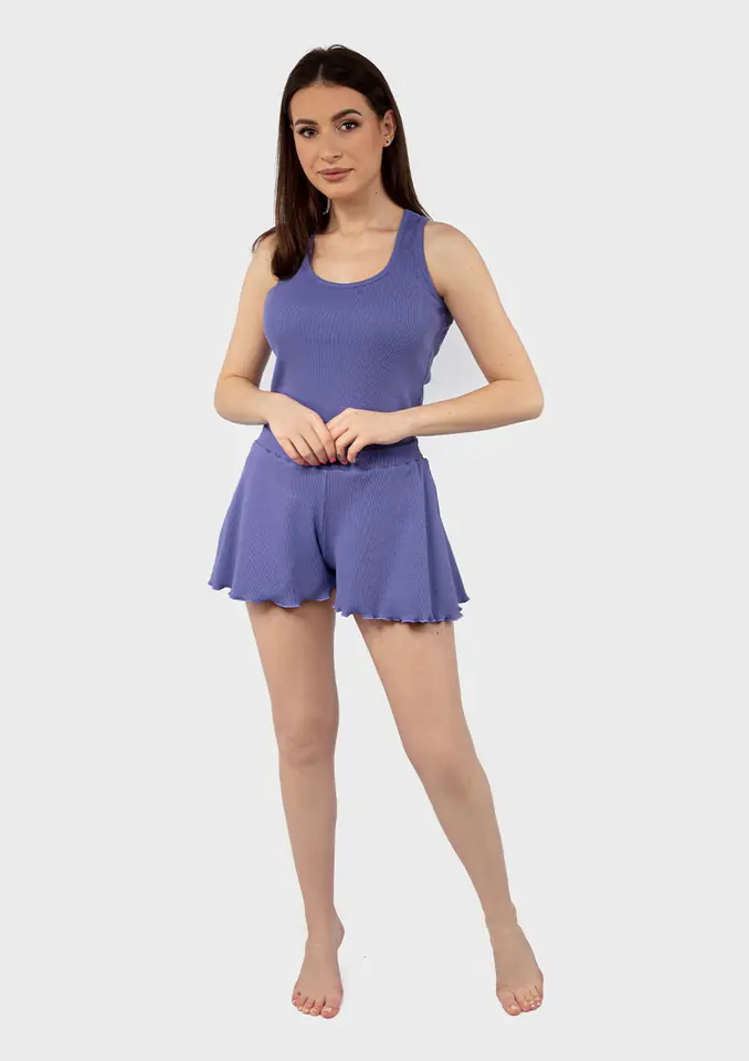 Komplet w prążki to esencja wiosny i lata, stworzona dla kobiet ceniących sobie zarówno styl, jak i wygodę. Jego lekka tkanina delikatnie otula ciało, zapewniając niepowtarzalne uczucie swobody i lekkości, które są idealne na ciepłe dni i letnie wieczory. Komplet składa się z bluzki w prążki na ramiączka oraz dopasowanych szortów zakończonych delikatnym falbankowym obszyciem. Szorty zakończone gumką w pasie idealnie przylegają do ciała. Romantyczne falbanki, dodają temu kompletowi niezwykłego dziewczęcego uroku, podkreślając Twoją delikatność i kobiecość. Dostępny w szerokiej gamie kolorów, komplet w prążki DKaren pozwala Ci wyrazić swoją indywidualność, dopasowując się do Twoich preferencji i nastroju. Bez względu czy decydujesz się na delikatne odcienie nude, czy może wybierzesz intensywne odcienie, zawsze będziesz emanować pewnością siebie i stylowym wdziękiem.