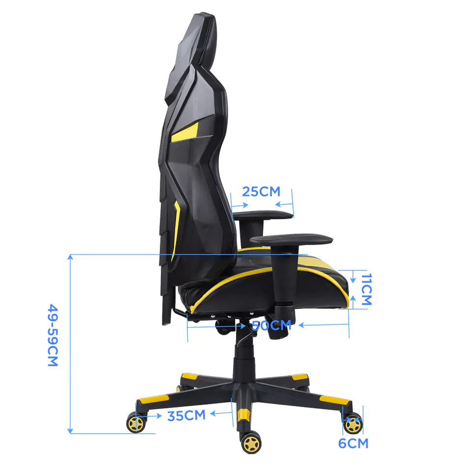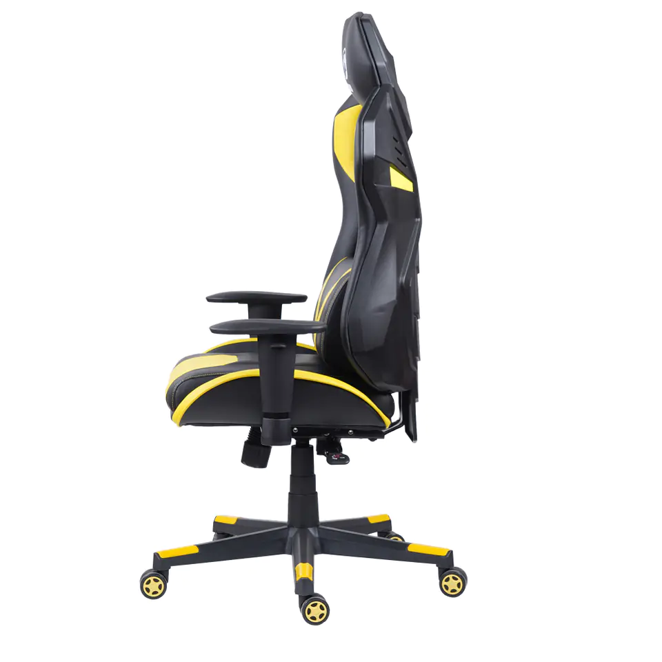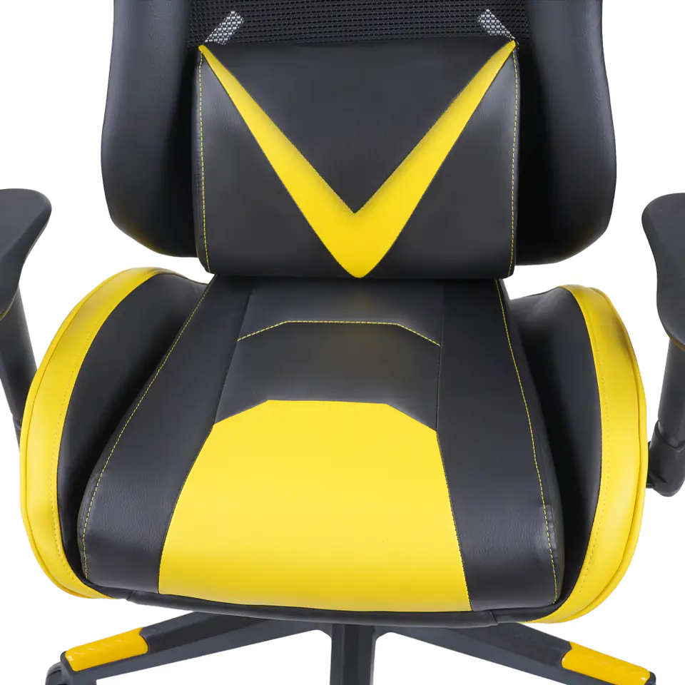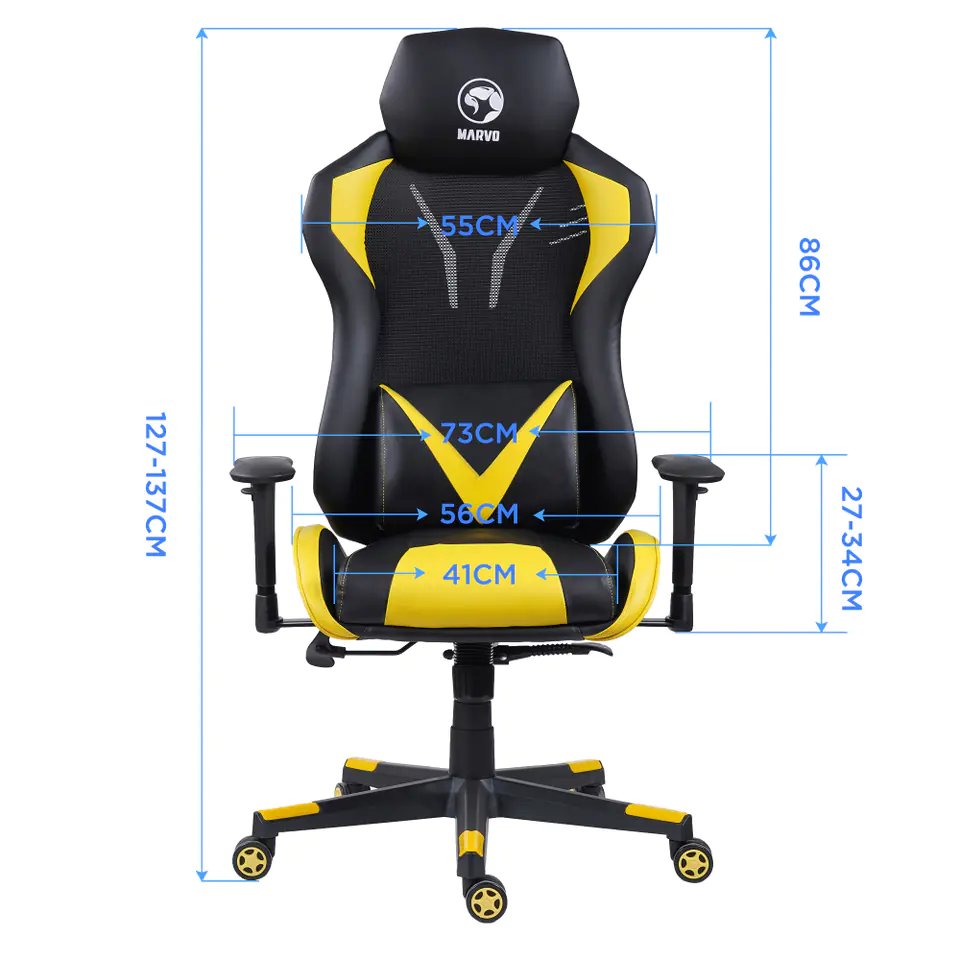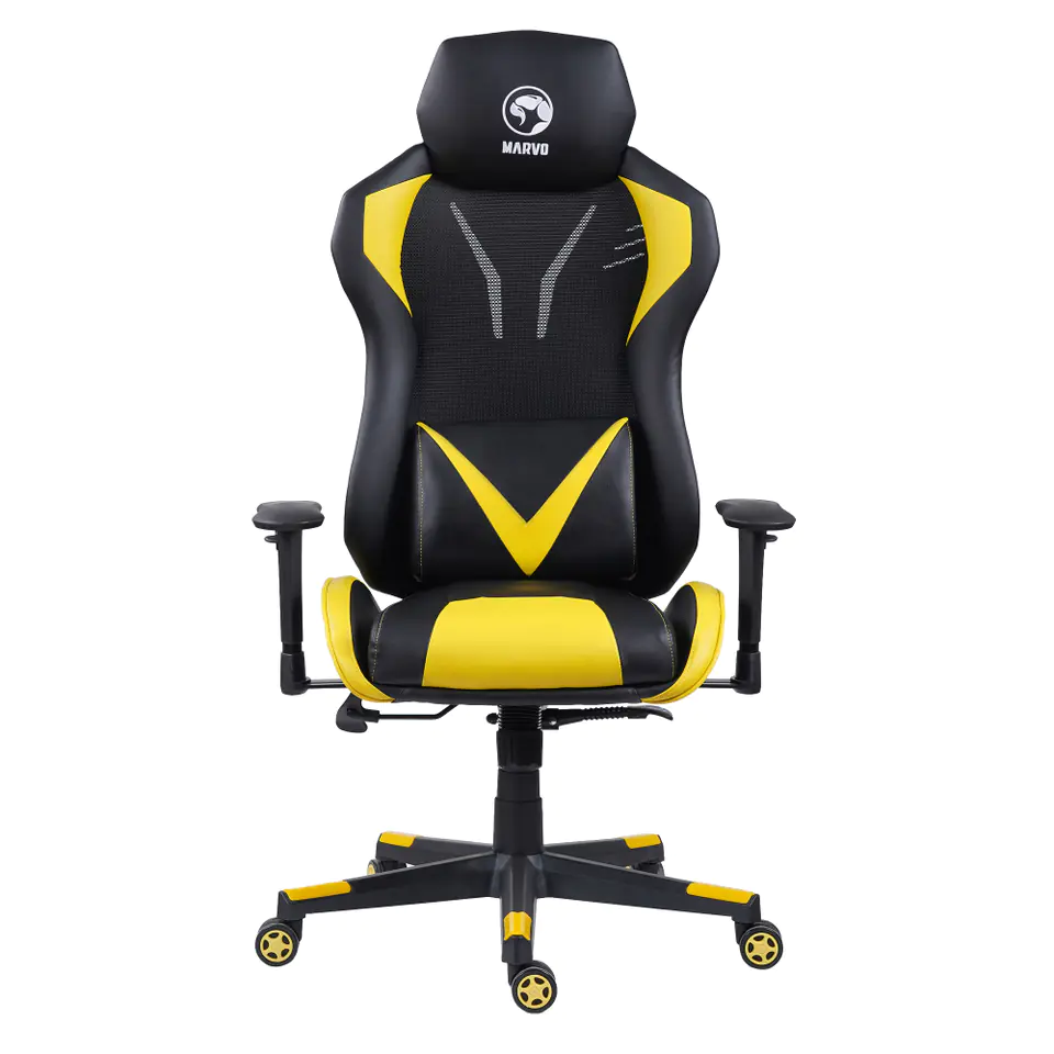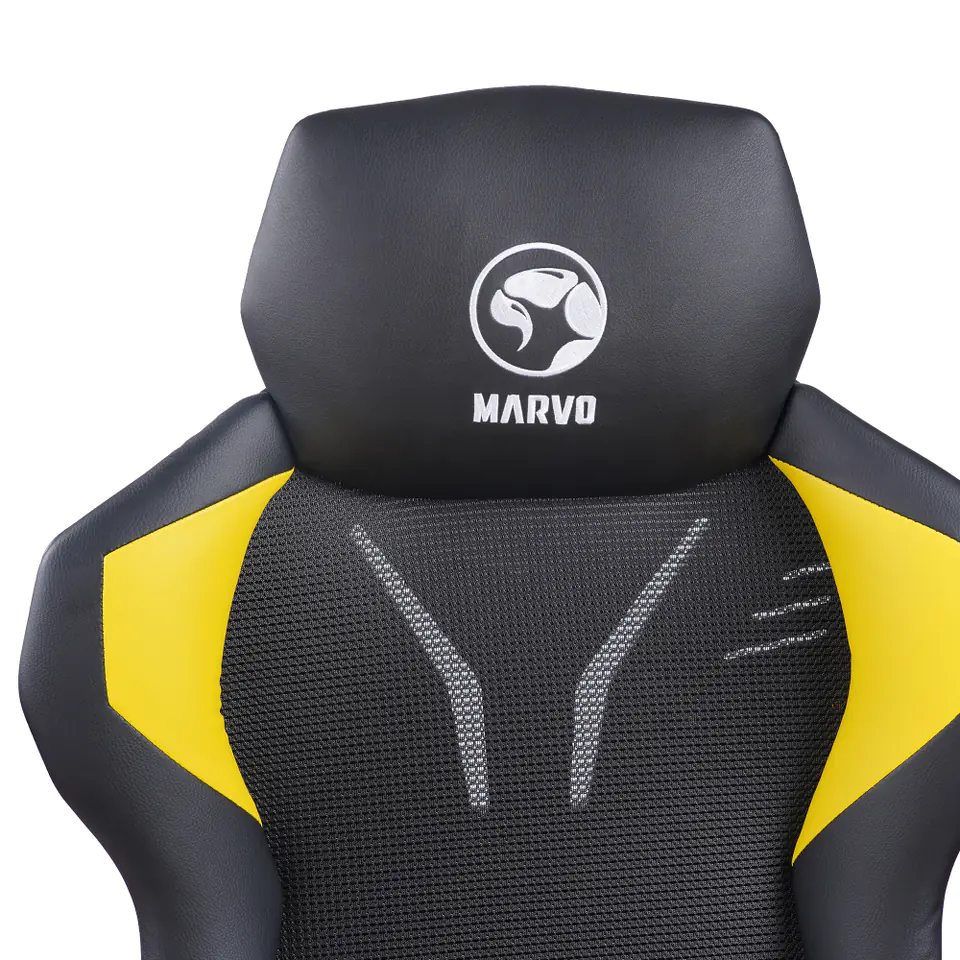 Marvo CH-133 to fotel gamingowy łączący w sobie nowoczesne wzornictwo i niebagatelną dbałość o komfort użytkownika. Żółte detale wykończenia, wysoka poduszka lędźwiowa nadają fotelowi sportowego charakteru.