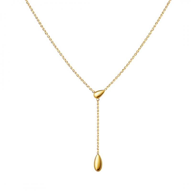 Modny naszyjnik ze stali chirurgicznej Nowa kolekcja biżuterii ze stali nierdzewnej platerowanej 14 karatowym złotem Świetnie pasuje do eleganckich, jak również do codziennych stylizacji.Elegancki dodatek na każdą okazję, do sukienek, swetrów i bluzek. WYMIARY:- długość całkowita łańcuszka z zawieszką: 26cm- długość regulacji: 5cmWymiary kropli: 1,2cm x 0,6cm1,1cm x 0,5cmWymiary kartonika:12cm x 10cmWaga:5g / 12g bruttoKolor: jasny odcień złota Biżuteria ze stali chirurgicznej nie ulega korozji, nie rdzewieje, nie ciemnieje!Producent: inny