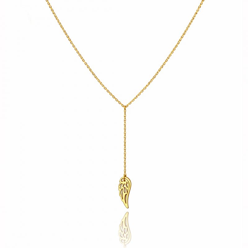 Długi naszyjnik stal szlachetna pozłacana 14k złotem, skrzydełko ANGEL WINGS NST2239