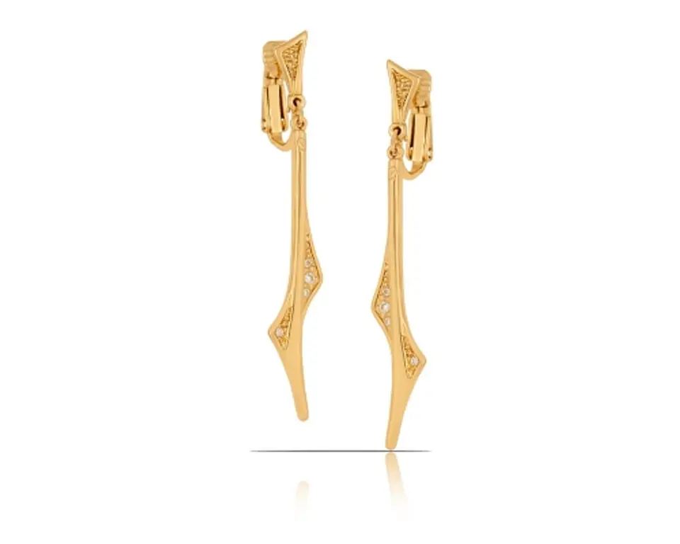 Niespotykany wzór długich,pozłacanych klipsów z ażurowym wzorem, zdobionych kryształkami Preciosa sprawi, że poczujesz się wyjątkowo. Długość 5,5cm, szerokość 0,5cm.