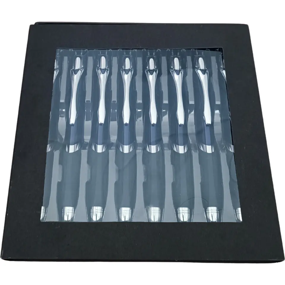 Automatyczny długopis metalowy z zapinką. Ergonomiczny trójkątny kształt obudowy. Jednostkowy kod kreskowy na każdym długopisie. Dostępne różne kolory obudowy. Kolor tuszu: niebieski. Ma wymienne wkłady. Grubość linii pisania: 1 mm. Długość linii pisania: > 900 m. Pakowany w pudełka prezentacyjne.