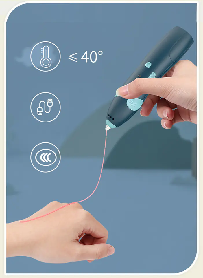 ⭐ DŁUGOPIS DRUKARKA 3D PEN BEZPRZEWODOWY BEZPIECZNY ZESTAW + WZORY KOLOR NIEBIESKI