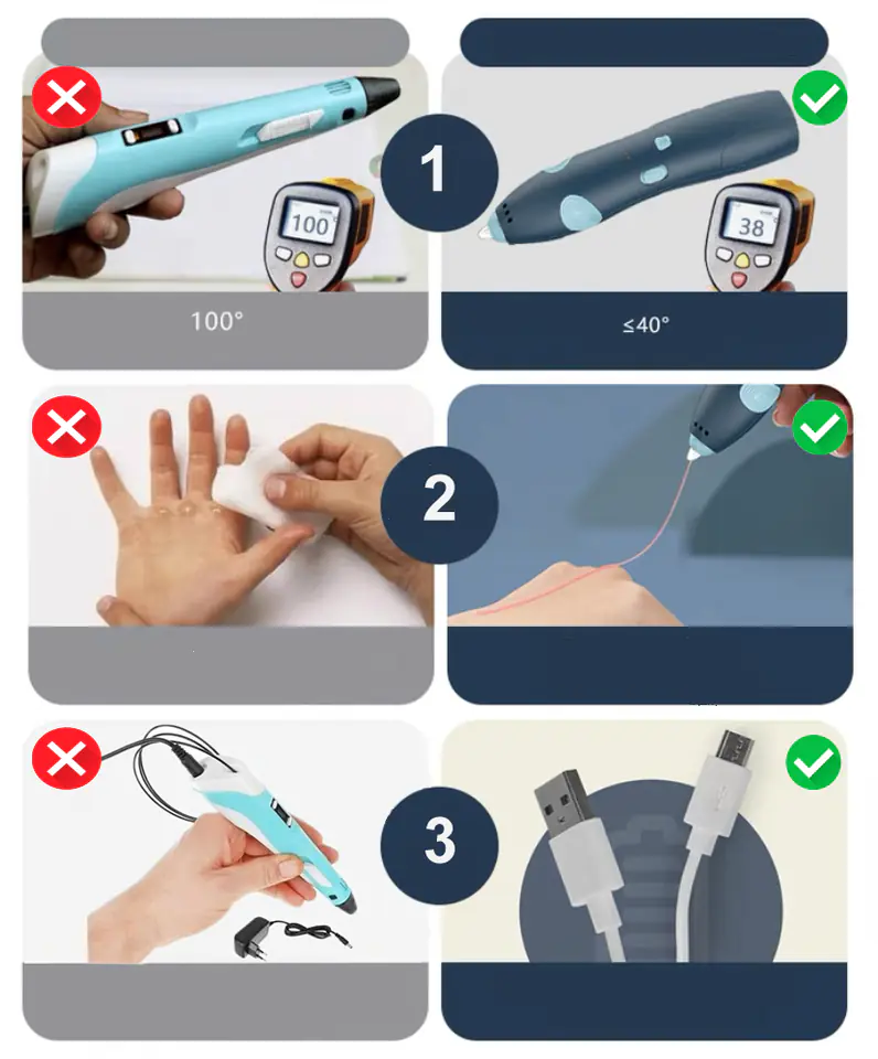 - 100% BEZPIECZNY - nie poparzysz się nawet gdy gorący filament spadnie na rękę