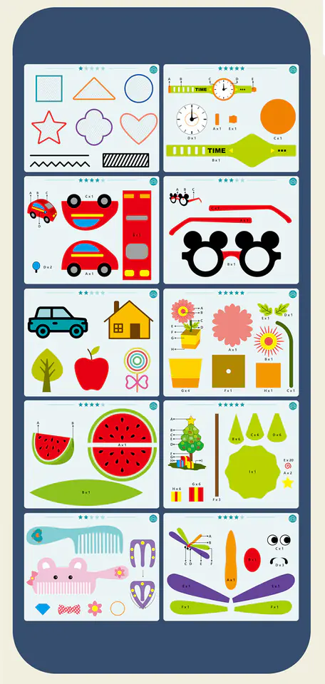 - 10 SZT KARTONOWYCH SZABLONÓW 3D