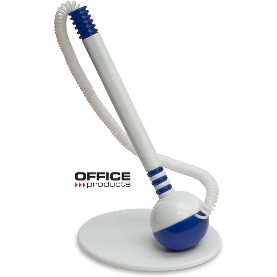 * długopis na sprężynce * dedykowany punktom publicznym, takim jak: urzędy, punkty pocztowe, recepcje i sekretariaty, etc. * długopis utrzymywany w pozycji pionowej * sprężynka odporna na odkształcenia * nowoczesny design * stabilna podstawa przyklejana do powierzchni biurka * kolor: niebiesko-biały