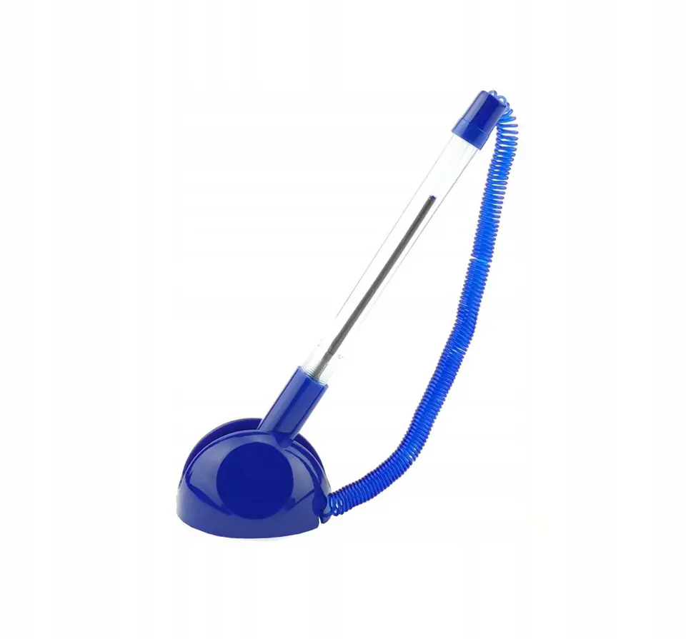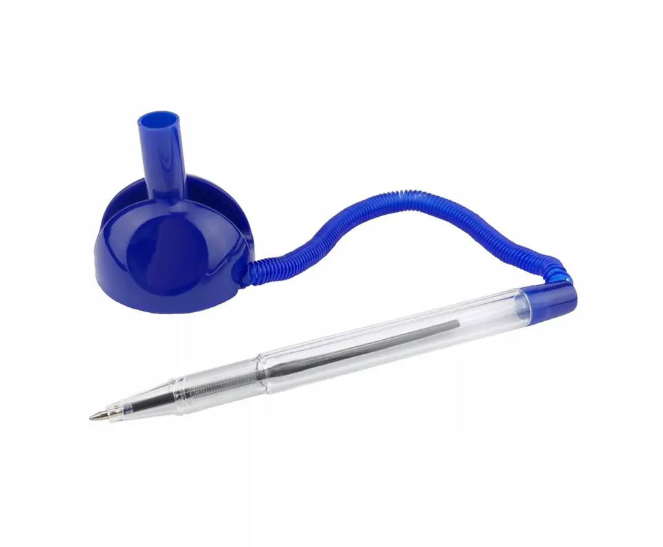 Praktyczny dlugopis recepcyjny, przeznaczony do uzytku w punktach uslugowych, bankach i urzedach. Stabilna podstawa przeklejana do powierzchni blatu.
