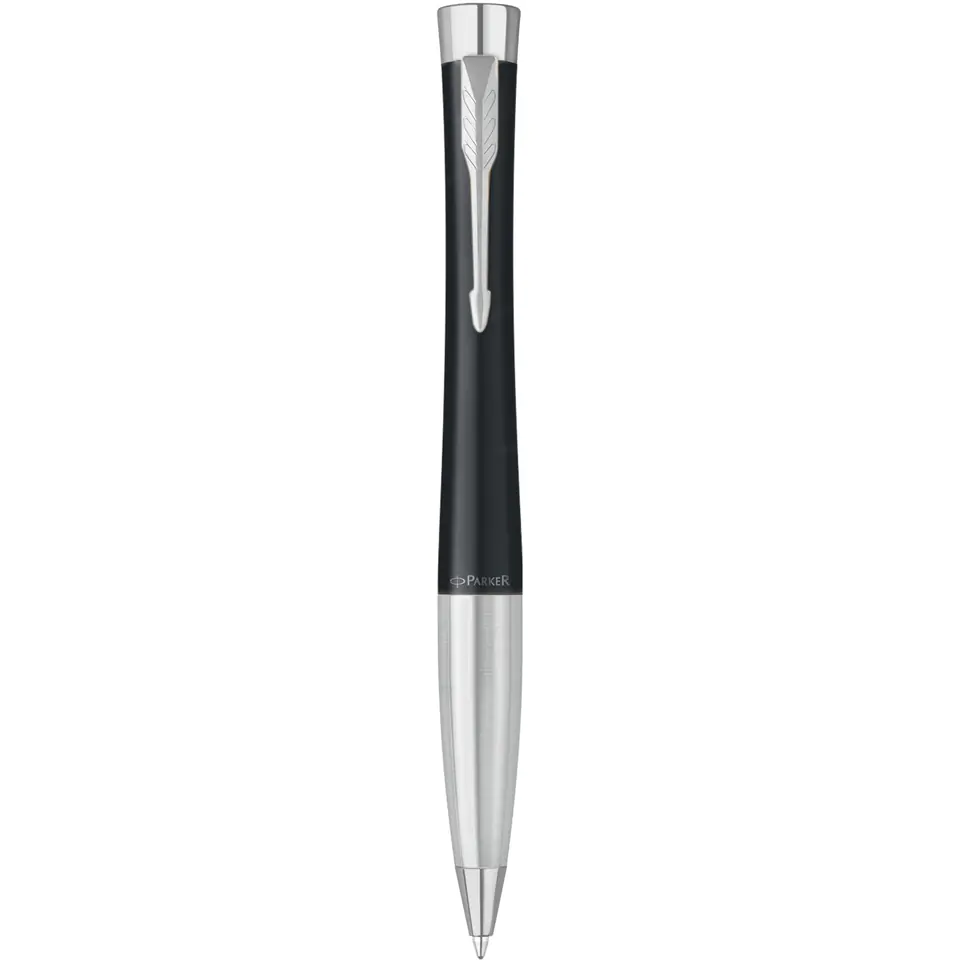 Parker Urban posiada piekny czarny, matowy kolor oraz chromowane wykonczenia, które dodają mu stylu. Korpus uzupelniony zostal charakterystycznym klipsem o ksztalcie grotu strzaly. Dzieki temu marka Parker jest rozpoznawalna i nie do podrobienia.