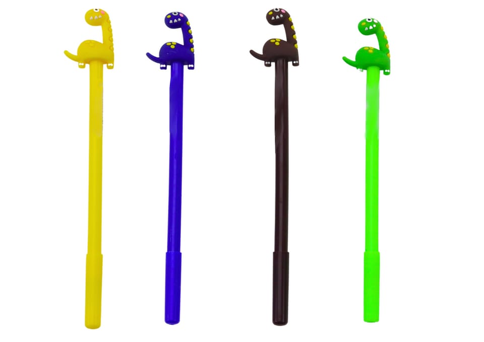Długopis Z Dinozaurem Zatyczka Czarny Wkład Mix Brązowy Żółty 0.5mm
