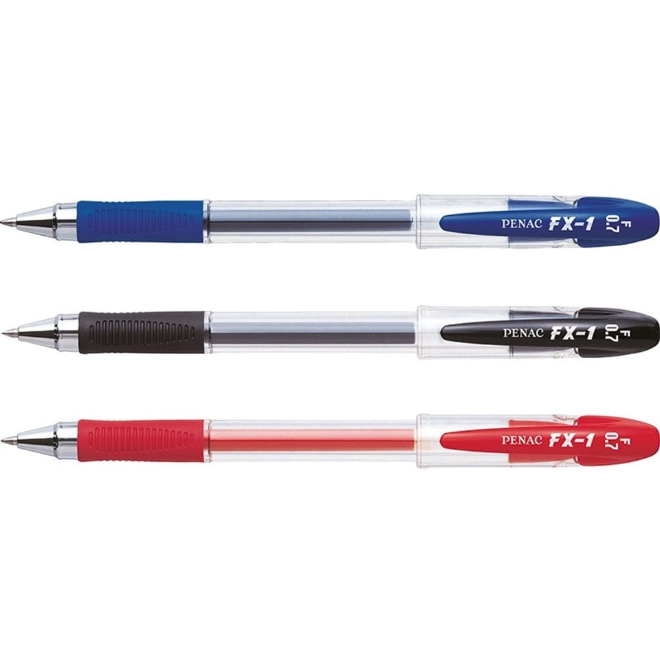 * długopis żelowy PENAC FX-1 * klasyczny długopis ze skuwką * z wymiennym wkładem * zawiera szybkoschnący atrament żelowy na bazie wody * przezroczysta skuwka oraz obudowa pozwalająca kontrolować stan tuszu * gumowana, profilowana rękojeść z antypoślizgowymi żłobieniami * elementy obudowy w kolorze tuszu * metalizowana końcówka * średnica kulki: 0,7 mm * grubość linii pisania: 0,35 mm * długość linii pisania: do 510 m * certyfikat ISO9001 * kolor: czarny, czerwony, niebieski * jednostka sprzedaży 1 sztuka