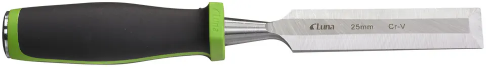 Dłuto płaskie z wygodną rękojeścią dwukomponentową. Trzon osadzony przelotowo - z główką do uderzania młotkiem. Ostrze ze stali CRV, o kącie 30 stopni, szlifowane na ostro.