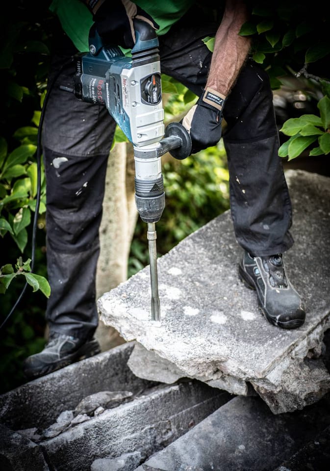 Dłuto płaskie, konstrukcja LONGLIFE z chwytem SDS Plus. Do pracy w betonie i innych materiałach budowlanych.