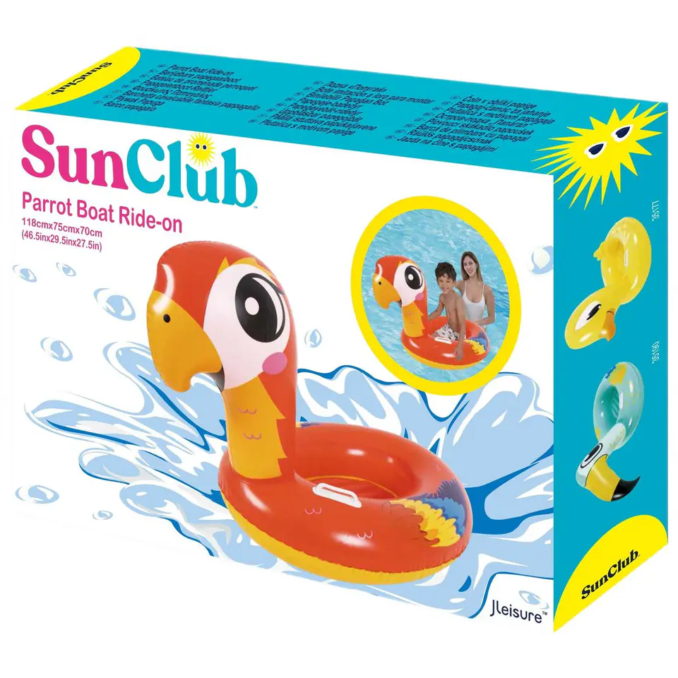 - udźwig do 45 kgz dmuchanym dnem3 komory powietrzne zadbają nie tylko o komfort ale i o bezpieczeństwoz oryginalnym i przyciągającym wzrok wzorem papugi dobrej jakości Vinyl sprawia, że jest bardzo wytrzymałynie odbarwia się pod wpływem działania chemii czyszczącej oraz promieni UVidealny dla amatorów wodnych kąpieli powyżej 3 roku życia