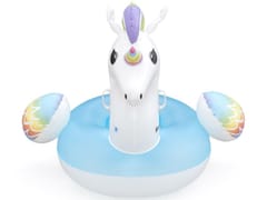 Dmuchany jednorożec to wspaniały sposób na letni odpoczynek. Piękna kolorystyka oraz niebanalny kształt czynią go wyjątkowym. Jego tęczowe elementy z pewnością zachwycą najmłodszych i zachęca do zabawy w wodzie. Jednorożec posiada dwa stabilne uchwyty umiejscowione po dwóch stronach oraz szerokie siedzisko co zapewnia dziecku stabilność oraz wygodę w użytkowaniu. To dmuchane akcesorium do pływania sprawdzi się w każdych warunkach zarówno nad morzem, jeziorem jak i basenie. Jest wykonany z wytrzymałego materiału PVC odpornego na uszkodzenia.