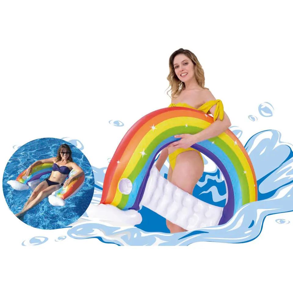 Kto lubi leniuchować latem, w wodzie? Pewnie każdy. Szum wody, ciepłe promienie słoneczne, zimne napoje i pływanie na wodzie w wygodnym dmuchanym fotelu w dodatku w kształcie tęczy to idealne połączenie!