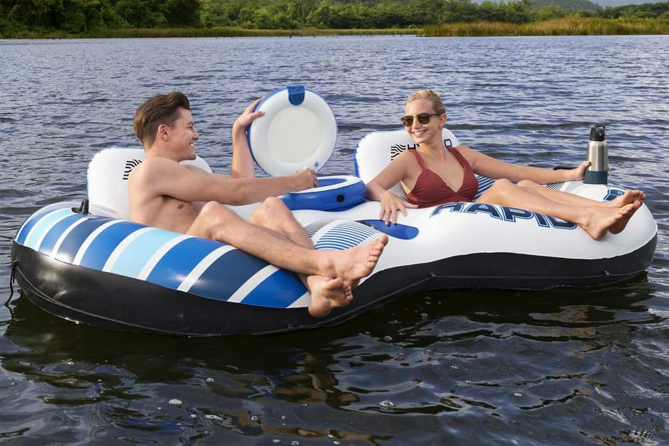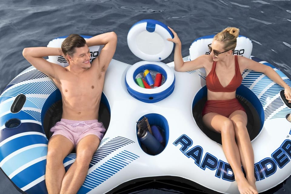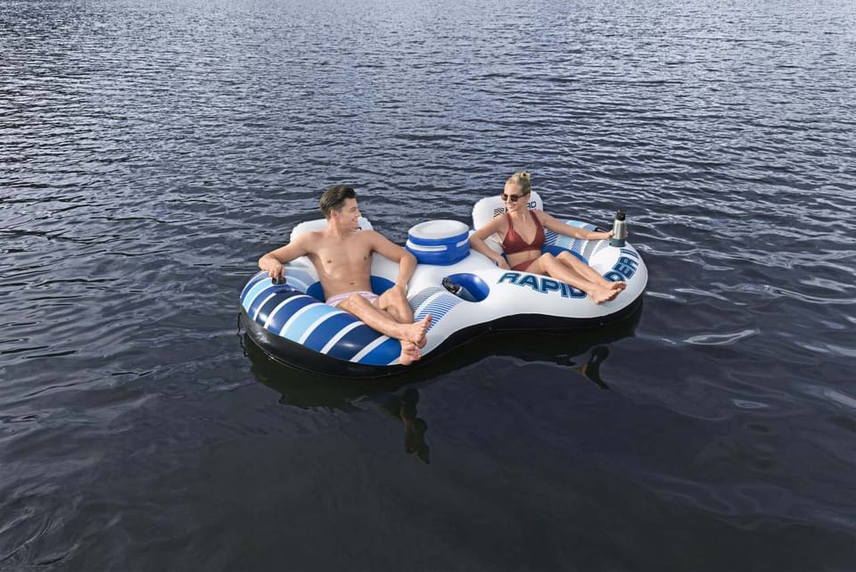 Dmuchany Materac do pływania dla 2 osób BESTWAY 240x122x50cm + Oparcia + Schowki